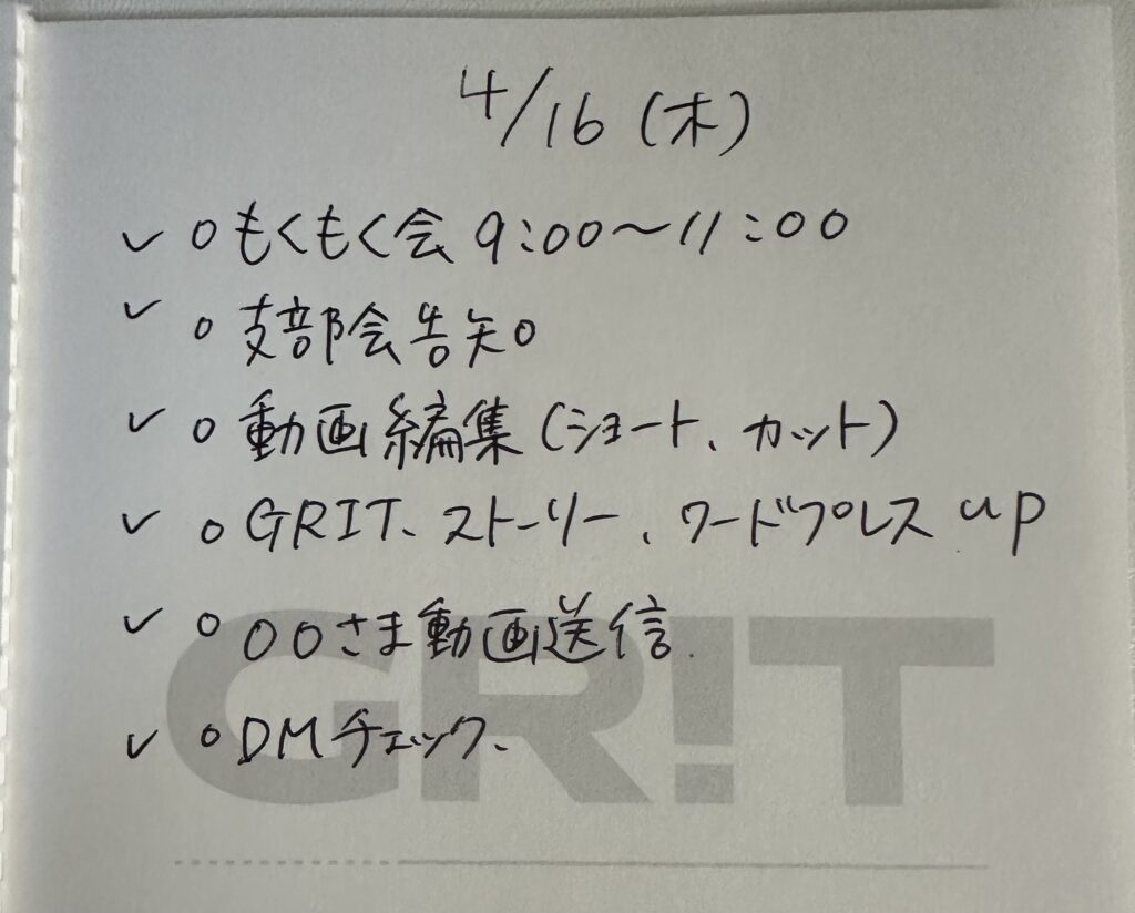 今日のGRIT