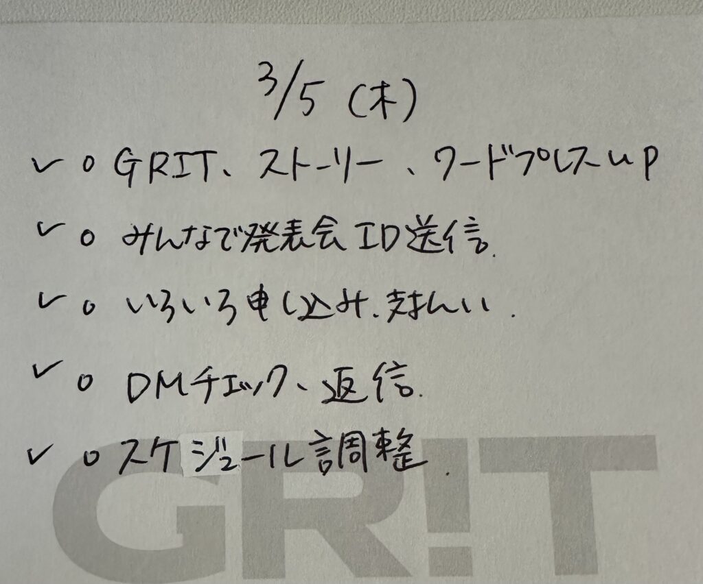 今日のGRIT